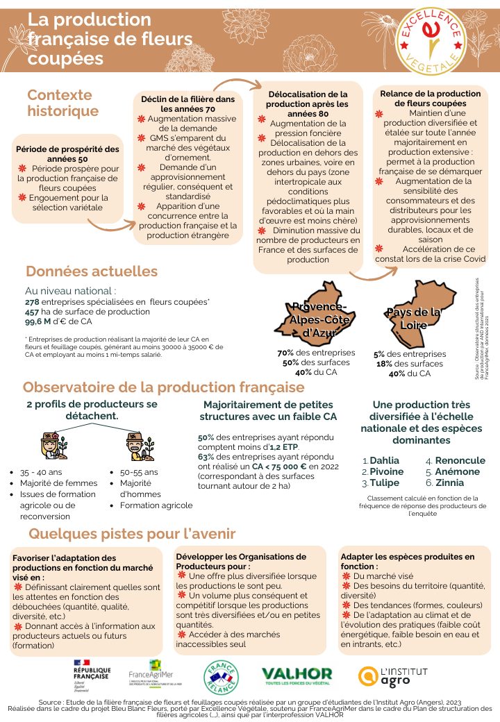 Bleu Blanc Fleurs est un projet soutenu par FranceAgriMer dans le cadre du « Plan de structuration des filières agricoles (…) », ainsi que par l’Interprofession VALHOR. Il s’agit d’un projet de structuration, développement et promotion de la filière fleurs coupées française. Il a pour but d’apporter des éléments opérationnels permettant d’aider la filière fleurs coupées à se structurer en s’appuyant sur les labels et certifications. Retrouvez plus d’infos dans notrecommuniqué de presse.